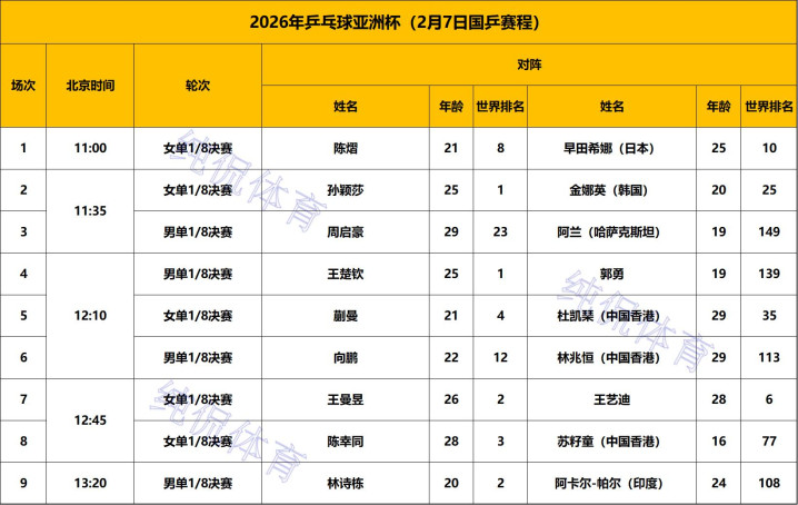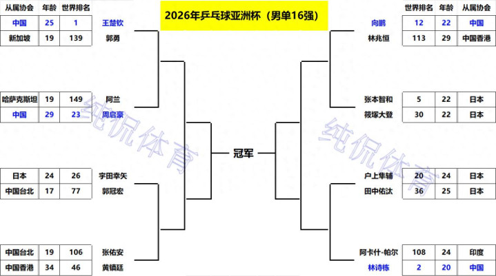 北京时间2月6日晚,2026年乒乓球亚洲杯结束了第3个比赛日的争夺,目前第一阶段小组赛全部结束,男、女单16强正式出炉!而在2月6日晚间进行了抽签仪式,签表详情见如下图表,下面带来详细信息。